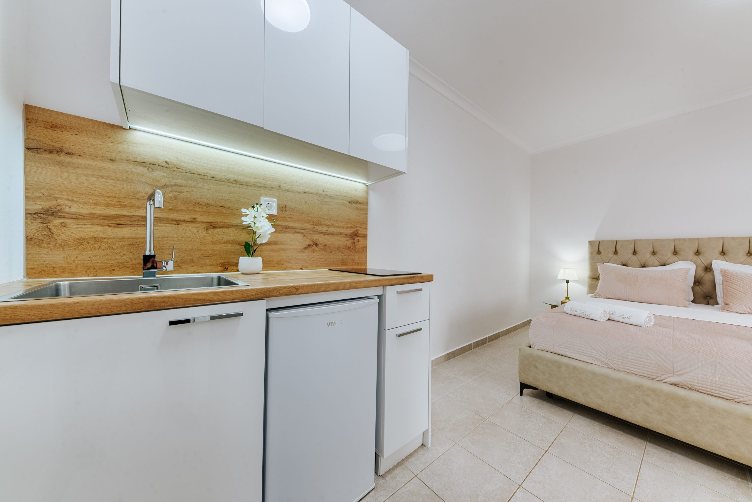 Studio je opremljen klima uređajem, mašinom za veš i privatnim kupatilom s tušem i fenom za kosu. Kuhinja s frižiderom omogućava pripremu i čuvanje hrane. Studio ima balkon, ormar, električno kuhalo za vodu i flat-screen TV. Smještaj sadrži jedan krevet.